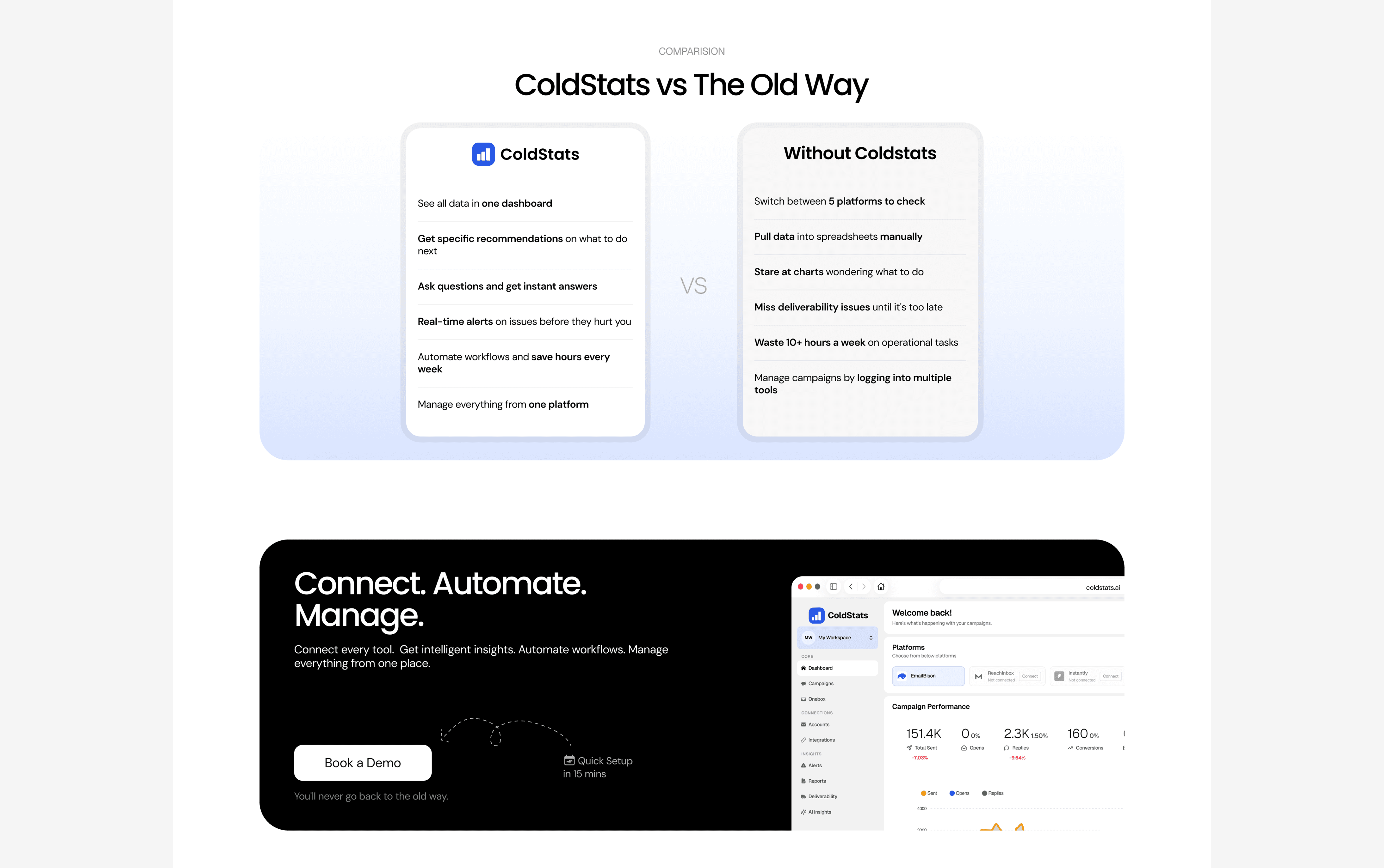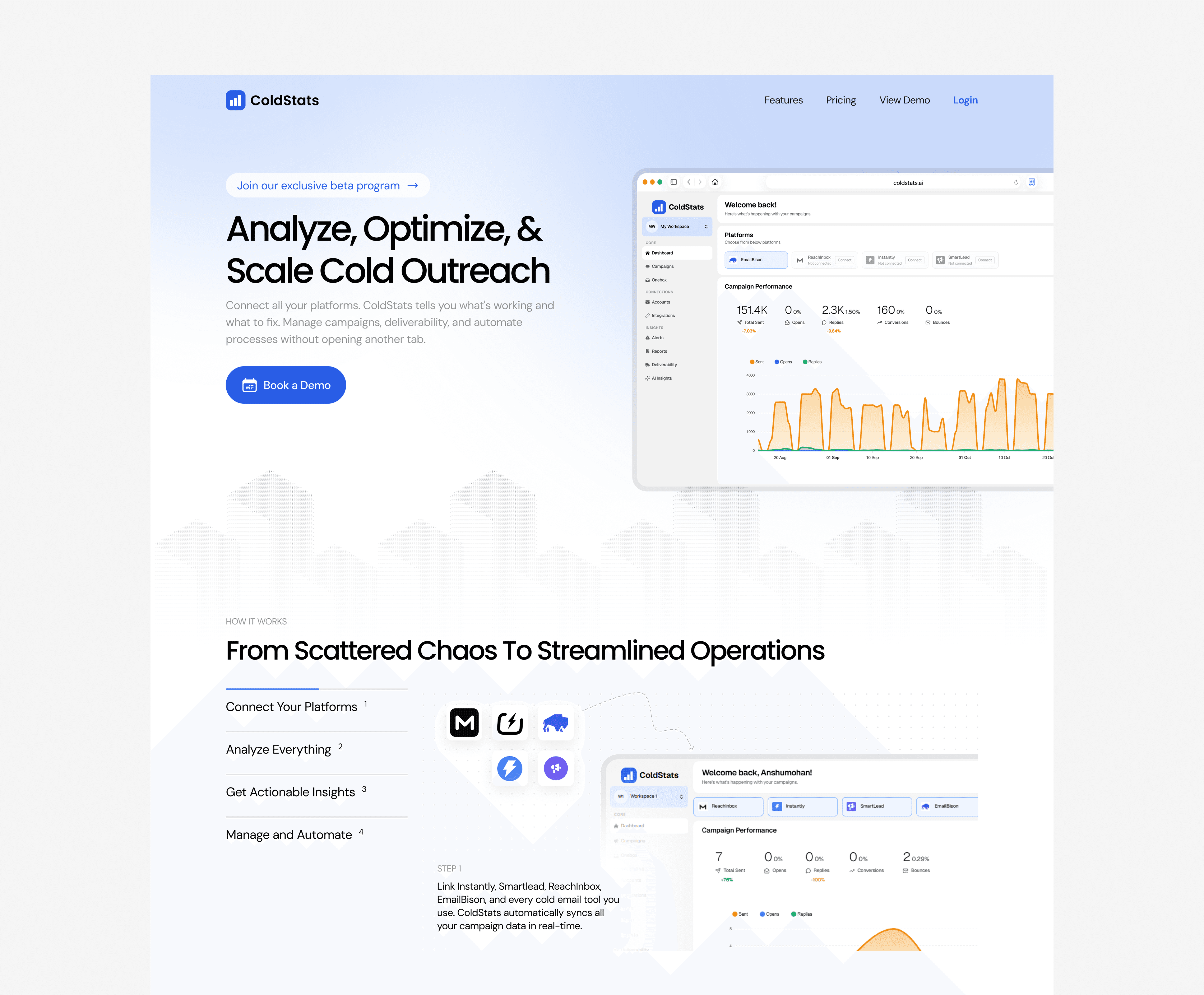 Partnered with Jacob Bowman to build ColdStats from scratch. Using AI, I created the MVP, refined screens, and shipped a full product in one month alongside multiple iterations of the website and dashboard. Focused on deeply understanding the problem, then delivering fast, actionable solutions.